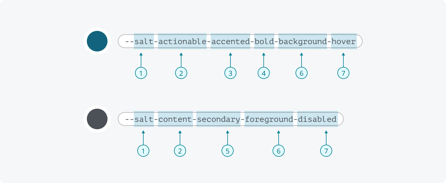 1. Design system prefix*: A term that clearly attributes the token to Salt.